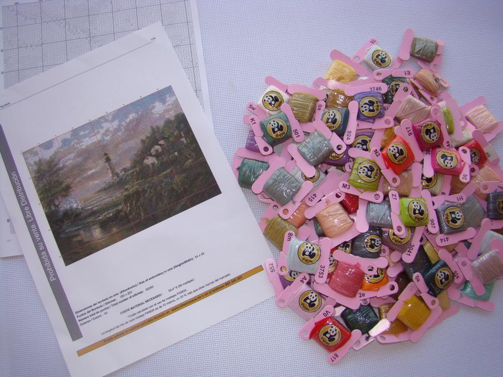 - Tela Aida 14ct blanca hilvanada por los cuatro lados.