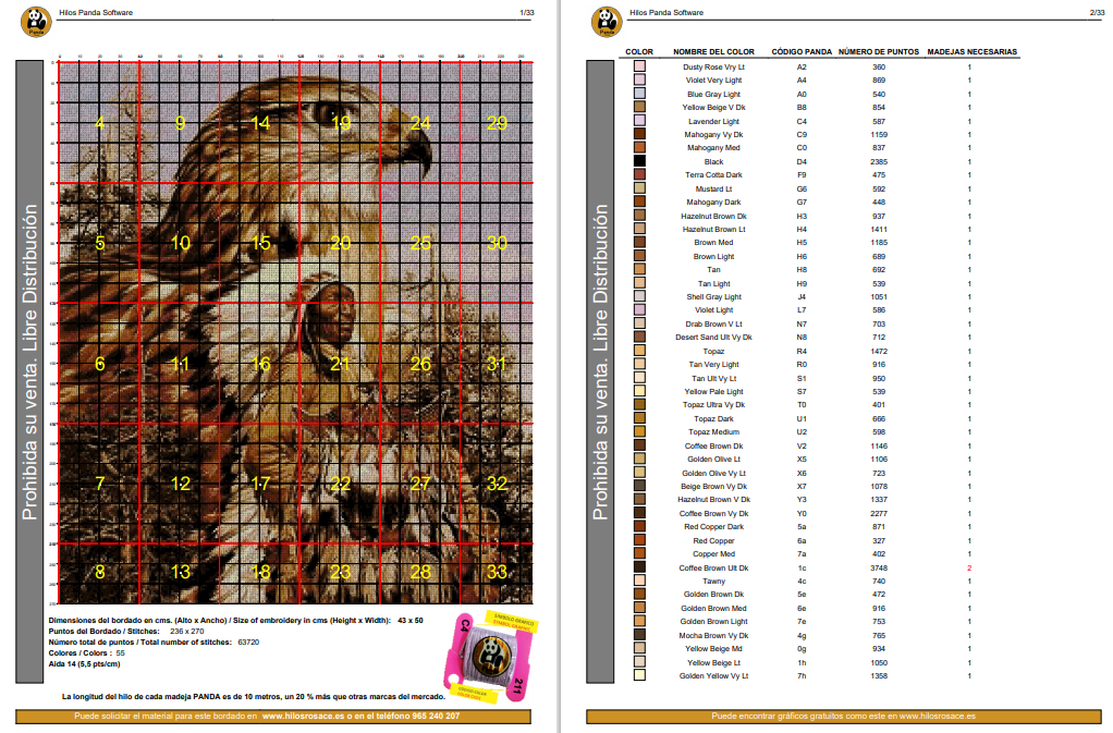 • Todos los hilos necesarios en madejas Panda de 10m completas.