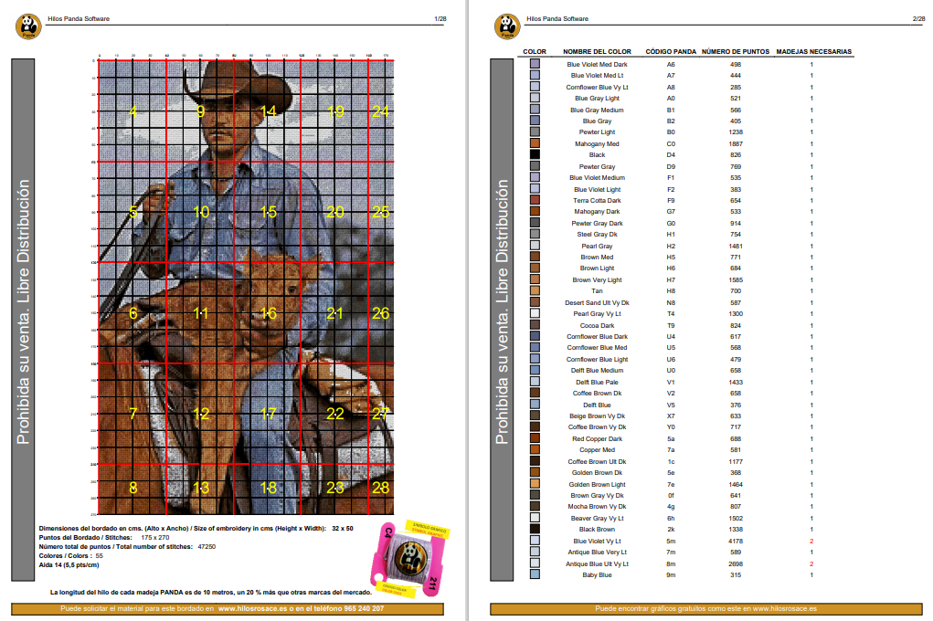 • Todos los hilos necesarios en madejas Panda de 10m completas.