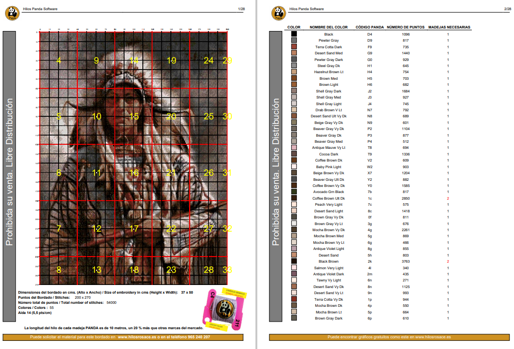 Número total de puntos / Total number of stitches: 54000