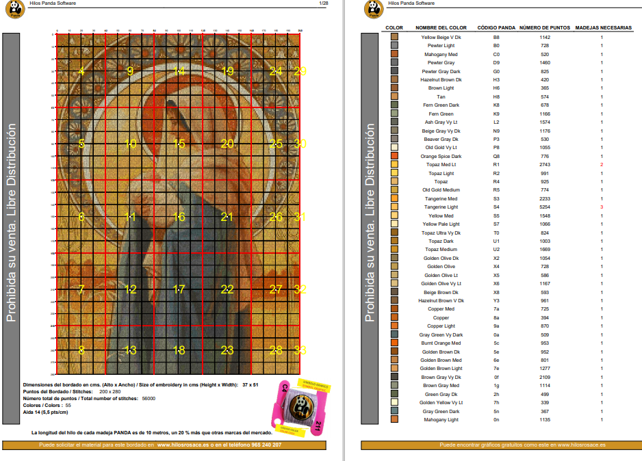 Número total de puntos / Total number of stitches: 56000