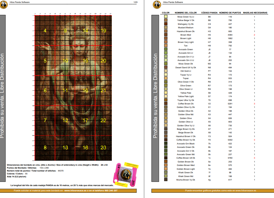 • Todos los hilos necesarios en madejas Panda de 10m completas.